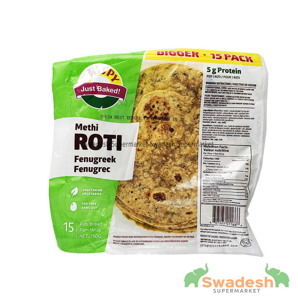 Crispy Methi Roti offers soft, flaky flatbreads infused with the distinct, earthy flavor of fenugreek leaves. These rotis are ideal for pairing with curries, dals, or even enjoying plain as a quick snack. Conveniently packaged and ready to warm, Crispy Methi Roti ensures an authentic and wholesome meal experience while saving you time in the kitchen.